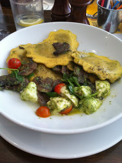 Ok, so he may not have finished it but at least we know there's a menu here that will keep him going for a few more years. I'm not sure if there's an age limit on the Prezzo children's menu but I reckon this would satisfy most appetites right up to - and in some cases, including - the ravenous teenage years. Anyway, while he munched through his pizza, Sarah enjoyed a rather special dish of wild mushroom girasolle (below) while I had pollo gorgonzola.