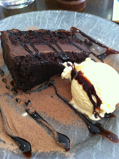 By now, feeling distinctly full, Sarah and I might have called it a day but Charlie still had his ice-cream course to come and it seemed a shame to let him eat his pudding on his own, so we kept him company with a portion of milk-chocolate fudge cake (as much fudge as cake - 'for a chocoholic that's pretty good' was Sarah's judgement) and a vanilla pannacotta.