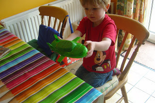 Apart from the painting (which didn't take long to do, just a while to dry) this is about one of the simplest, quickest crafting projects we've done. Ok, it's not very hands-on for a toddler. Well, not until near the end, anyway...