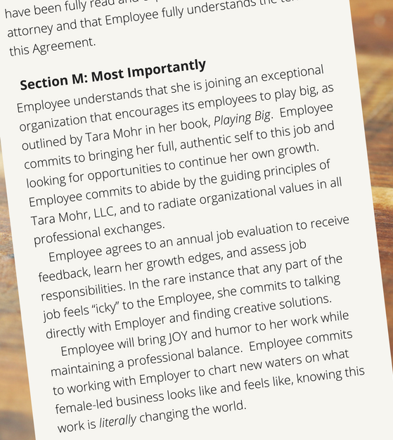 To give you a little taste of how we roll, here’s what my business manager added to her employment contract: