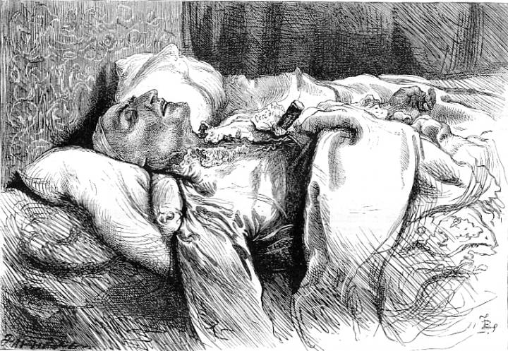It lay back on the pillow of Monsieur the Marquis. It was like a fine mask, suddenly startled, made angry, and petrified.