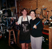 That's me in Placid, working as a bike mechanic, with my pal Annie - who doesn't truly have any idea what to do with the pedal wrench she's holding.