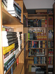 I’ve decided to tackle the problem in stages, starting with the paperbacks. There are thousands of new/unread mass market paperbacks on these shelves and I’m starting with them.