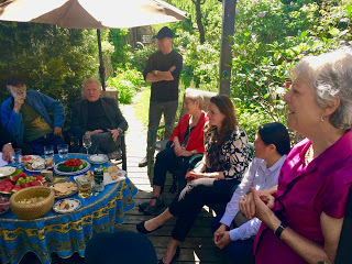He was with us, no question, our dear friend. This morning was wet and grey with more rain predicted - and yet amazingly it got warmer and sunnier until by 2.30, when guests started arriving for Wayson's memorial, it was a beautiful perfect day. We could sit on the deck, as I'd hoped, the deck where Wayson spent many happy hours reading and dozing.