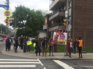 This morning, we were all up early to protest. She had to get her reluctant boys out of the door at 7.45 with their signs, for a school protest against Ford's vicious school cuts. How proud I was of her and her boys and the whole community - the picture below was taken early on but many more came, many cars honked in support as they went by. Of course, many did not. Then at 8.30 we marched around the block into the school where there was a singalong - the Queen Vic school, some Bob Marley. Ben said, "Are we going to sing Happy Birthday?"