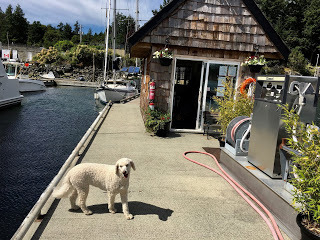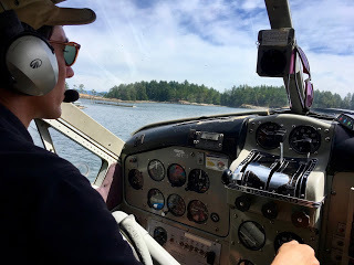 An easy flight in the float plane - filming much of the way to show the boys when I get home, skimming up and over the water, and 20 minutes later, splashing down in Silva Bay. Chris waiting with beautiful Sheba in the little red Fiat, like a mobile strawberry. His beautiful home, more lustrous since I was last here - he's done an enormous amount of work in the garden, as those who follow his blog will know. Everything serene and lovely.