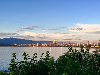 The magical city at dusk. When the sun shines, there is no city like this on earth - the roses! The mountains, ocean, trees, the sweet sweet air.After our lanyard party with Prosecco, I had dinner with an old friend, a director from my theatre days in the seventies, and this morning, brunch with another old friend. And then out to UBC to start work. Tonight, the organizing group is having dinner together in a pub where we can watch the Raptors, if we want, Tomorrow the excitement begins. Stay tuned!