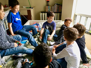 Monday was Eli's seventh birthday party, and luckily the sun was out. When I got there, I asked him how many kids he was expecting. "Oh, about a hundred," he said casually - and seriously. "I have a hundred friends."