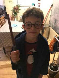 I gave Eli, among other things, a Harry Potter wand and glasses. Big hit. "He and Ben are waving the wand and turning each other into lions," Anna told me next day.