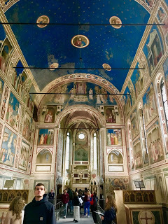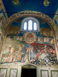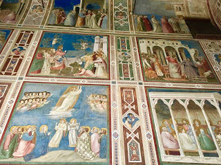 If it's Tuesday on the Bruce Trail, this must be Padua. I moaned this morning when I received my wake-up call at 7.15; I'm supposed to be on vacation but it can feel sometimes like work, this search for Renaissance genius. In fact, with rain predicted and tired from yesterday - we walked in fact 24,000 steps, Bruce informed me - I contemplated backing out of today's jaunt. But am very glad I did not. We were on the 8.25 train to Padua, to see Giotto's magnificent frescoes, one of the greatest masterpieces of western art, in the Capella della Scrovegni.