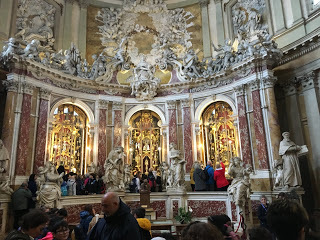 A simple little side altar in the same church. Baroque enough for you? The wealth of the Catholic church is unimaginable. And yet they ask for donations "for the upkeep of the churches." LOL.