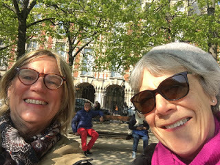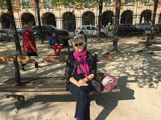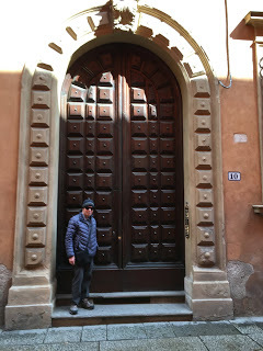 Another great scene - when we got back from our walk late yesterday afternoon, we entered the vast doors of the apartment building and went to our floor. But we could not remember which apartment door was ours, the one on the right or the one on the left. The one on the right had the name of our landlady, whereas the other had some other name, so we tried to get into the one on the right, but the key did not fit. Bruce tried and tried, and so did I, and then I held my phone as a flashlight while he bent down and tried again. Luckily a nice man came home and told us we were trying to get into his apartment.