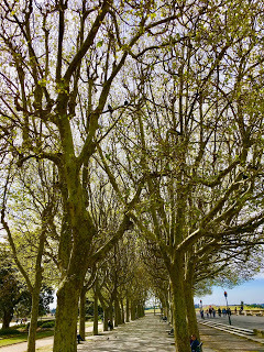 the ubiquitous alleys of plane treesDinner: white asparagus in vinaigrette and chicken breasts in a cream sauce. With Cotes de Rhone and followed by cheese. Meal prepared by Madame in 15 minutes, while Monsieur and I discussed why I liked H is for Hawk and he did not, and why we both loved Elena Ferrante but Lynn did not. Fascinating.
