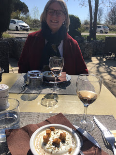 But today was sublime; I am such a lucky woman. I mentioned to Denis that I'd loved the doc The Cave of Forgotten Dreams about the Chaumet paleolithic cave drawings, that I'd actually seen the cave at Lascaux as a young child on a visit to France with my parents; and Denis discovered that the replica of the Chaumet cave they've created so people can visit without damaging the art is a two-hour drive away. He booked our tickets, and we were off at 10 a.m. He had of course also found a well-reviewed little restaurant nearby, so we arrived at noon and had lunch first. Outside in the sun. On March 31. Yes, I know it snowed in Toronto today. I'm so sorry to hear that.
