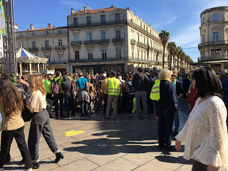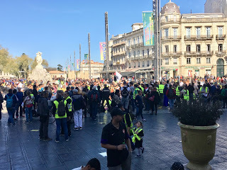 Saturday afternoon is when the demonstrations take place throughout France. Apparently, today the big one was in Avignon. The one in Montpellier was much smaller than when this all started, Lynn told me.