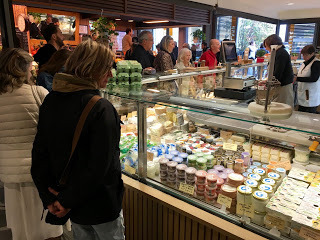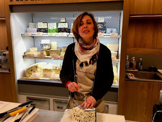 Behind this woman, on the top row, are seven different kinds of Roquefort. She is slicing the eighth kind for Lynn. It brought tears to my eyes. I was also channelling my Francophile father, who was with us in spirit, smelling the Roquefort.