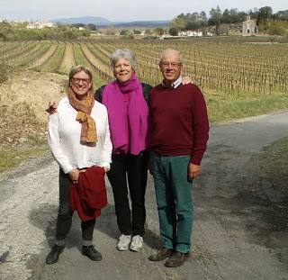 A lovely last day in Montpellier yesterday, a gorgeous sunny day, and we drove an hour and a half north to Isabel Huggan's beautiful house, Le Mas Blanc near Tornac, where she offers a writing retreat and editing services for lucky writers who go there. We had a long walk through her property while she and Mme. Blin discussed writers they like and do not, and I listened to birdsong and smelled the sweet air of spring.