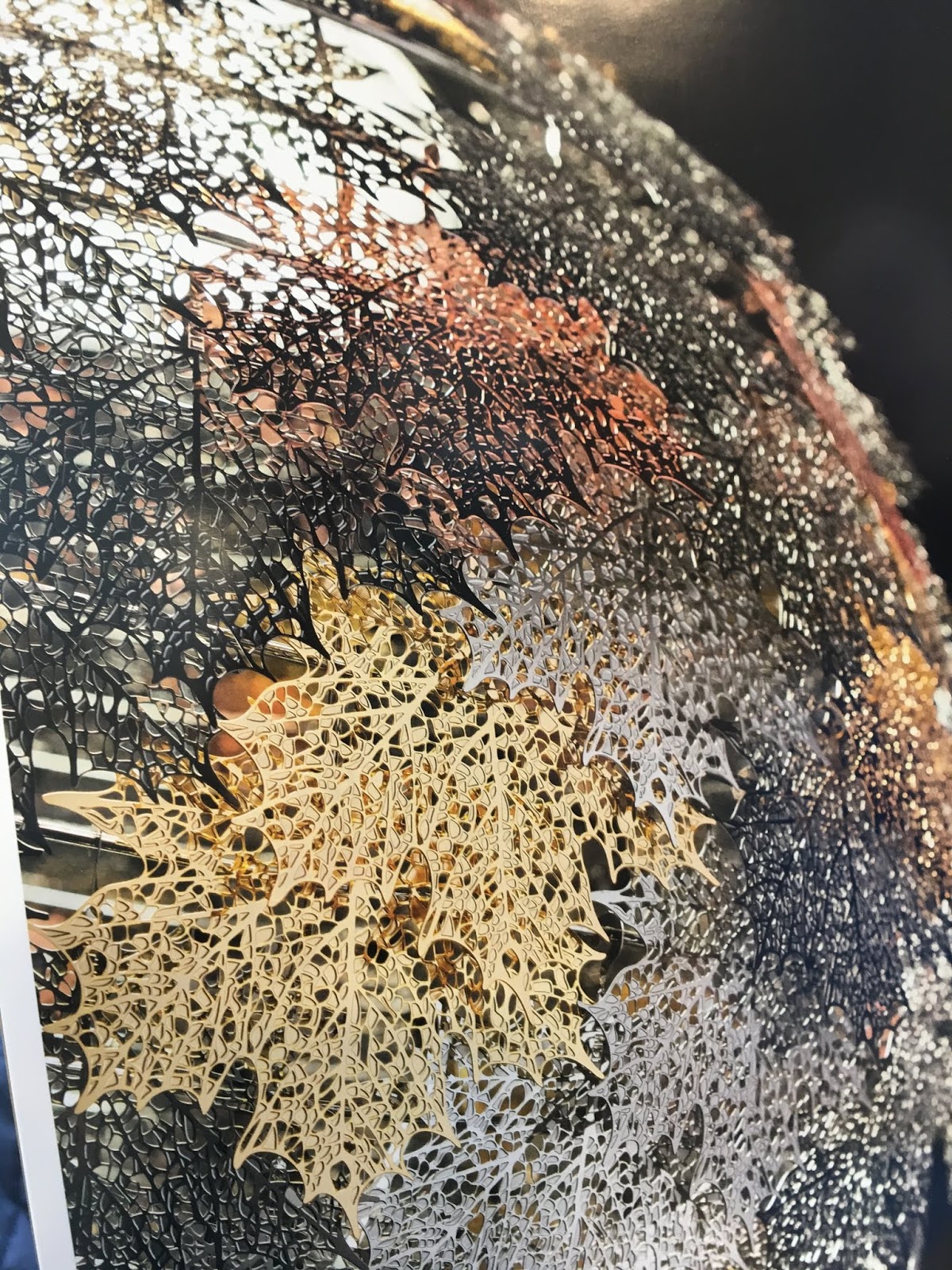 We have the raw materials; that's the finished product. We'll hang individual maple leaves all over the frame and suspend it in a very tall passageway.