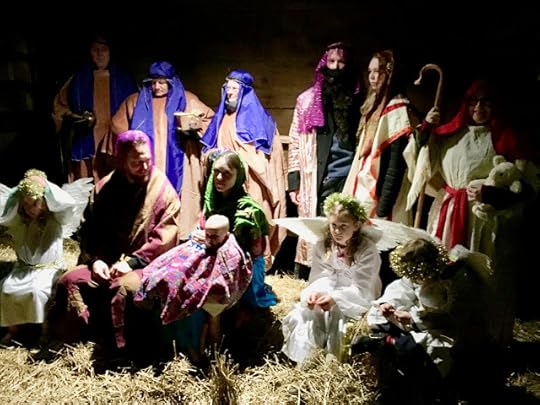 Last night's pageant at Riverdale Farm was the best yet. It was a mild night, the crowd was enormous, everyone in the cast was in the right place, and so was the choir. My last year, after about 16, as producer and director, and I'm leaving it in good shape. It made me cry, of course. At the start, in the Drive Shed as we start the carols, I turned around; behind me, the huge crowd of 300 or 400, from the very old to babies; right behind, my neighbours Len and Beth with their daughter Janice, who was in nursery school with Sam, with her son, who's Ben's age. I felt such overwhelming gratitude to live in this community, to have lived here for so long, to be so tied to a piece of the earth. Roots. Big strong roots, for us all.