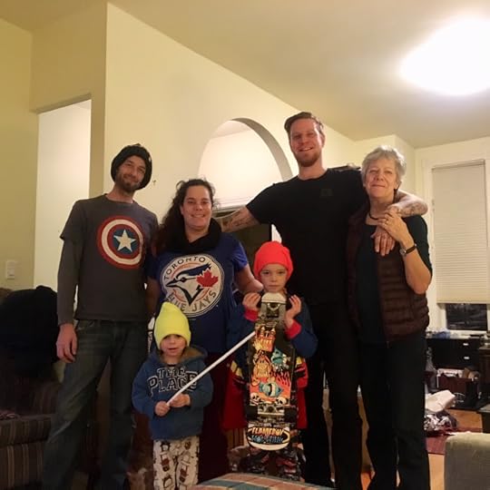 Anna was there with her family, and afterward we went to the party at Mary's, where the fire was burning, the extravagant spread was waiting, and Sam was waiting too. Ben wanted to know which "chimbley" Santa was going to come down; he was worried about the fire. We ate and drank and talked and laughed with old friends and neighbours, and once more, I didn't cry but almost. Sam joked to Gina and Paul how jealous he was of the GT Snowracer sled their son Ryan got one year, and how I made sure he got one a few years later. We talked about times at Riverdale Hill, the very tall sledding hill nearby - going toboganning a few Christmasses ago. No snow at all this very mild year.