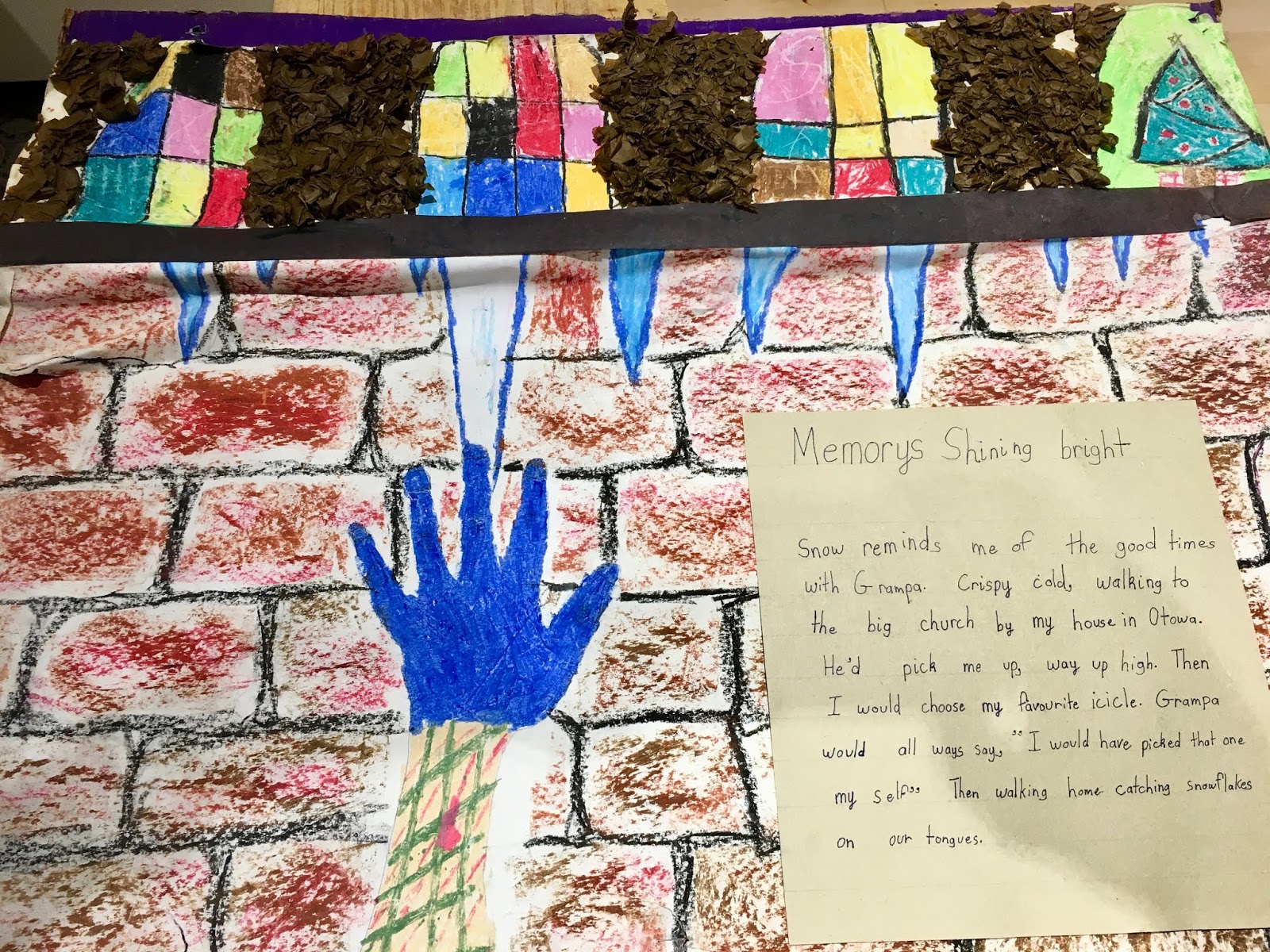 It's going to be crazy around here for some months. But this is my chance to get rid of junk. Or at least to store it more effectively. Here's the kind of problem I face, tho' - artwork and a poem about walking with my father - "Memorys Shining Bright" - that Anna made in Grade 3. Love is! What to do with treasures like this?