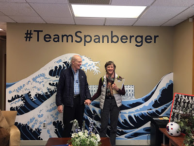 Oh stop. It's gloomy and damp out, I contracted a cold at 9.45 last night as I watched Republicans win, and the world just looks dark. Let the idealistic faces of those newly elected women cheer me up. And this: my cousin and her husband, who worked to elect this candidate in Virginia - and she won, defeating a Republican by a small margin, thanks to Barbara and others like her. This is what democracy looks like: