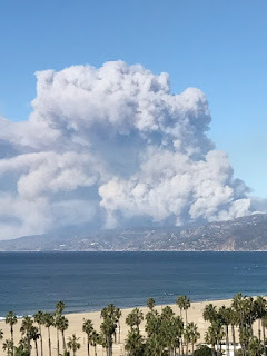 Picture sent by Suzette in Santa Monica - the view from her balcony of the smoke from the fires. She says there are people now homeless staying with friends in her building. Very frightening.