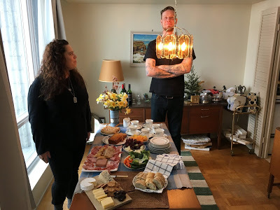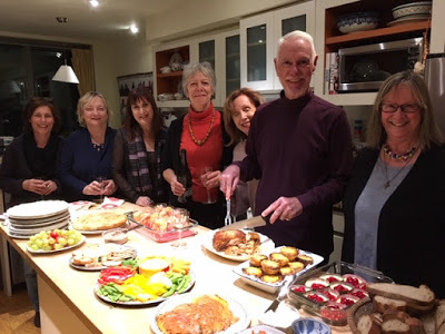 Anna arrived from Ottawa Saturday without her boys; we shopped for the event, and Sam prepared and laid out a beautiful spread.