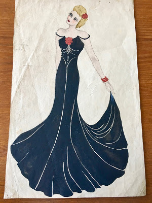 On the back: Fashion design classes, Northampton Technical School, 1938. Drawn and painted by Dorothy Leadbeater. She was 18.