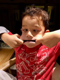 But we had to hustle off; it was a gloomy afternoon and we were going to see "Ralph Breaks the Internet." Which turned out to be funny and clever, perhaps a bit too much for my friend, who had an earache and wanted to go home before the end. So we did. He was happy to see his parents and his brother, who is the most enthusiastic small person. An old mattress is Ben's "bouncie" - Anna just leaves it on the living-room floor and he leaps onto it from the sofa or the chairs, face first, somersaults, jumping ... A trampoline is definitely in the future, and a gold medal in gymnastics.