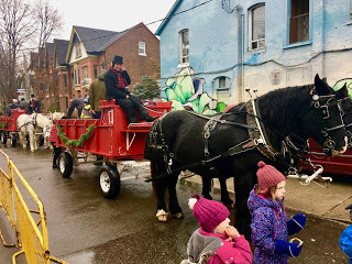 We went in the rain to the Cabbagetown Christmas Fest, where the wonderful Childrens' Book Bank was giving away books and there were cookies and hot chocolate and (almost) sleigh rides.