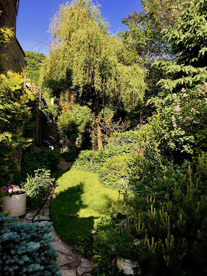 It's not even June yet, and today felt like mid-July - sweltering and muggy. My left lower eyelid has a twitch, driving me crazy. Exciting: my neighbour to the north is right now up a ladder with his chainsaw, cutting down a dreadful messy tree that was leaning over my yard wreaking havoc.