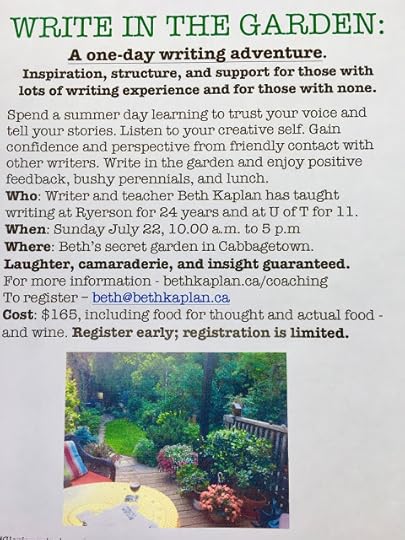 I can see Dorothy smiling down on the garden she helped create. She'd be so proud to see it now.And to celebrate Dorothy and her lessons to me, I open my garden to ten or so writers every year, to spend the day there digging up stories, planting the seeds of future writing, talking, eating, drinking. It's a wonderful day.