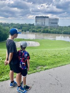 My ex is staying here this week, and we were supposed to take Anna and the boys to see a movie. Many texts and phone calls as the situation grew more dire; even one of the downtown movie theatres was flooded. Finally, they managed to make it over here on a functional bus, to hang out as the rain stopped and helicopters and sirens sounded. Went for a walk and found Riverdale Park, usually a big baseball field, was now a swimming pool. Dogs splashing joyfully in the water, people wading, the water nearly waist deep.
