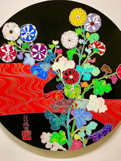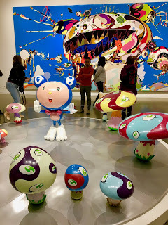 We are having a lovely if quiet time. Yesterday, Margaret took me via Skytrain to the Vancouver Art Gallery, to see the exhibit of the quirky Japanese artist Murakami. Very strange stuff, some of which did not appeal - influence of manga comics, he says, Walt Disney, Star Wars - all over the place. Fun for kids, and some lovely things, especially his flowers. We watched a video of him at work in a huge factory with a staff of scores of young people, filling in his vast computer-generated images with colour. Matisse would have been bewildered but intrigued.