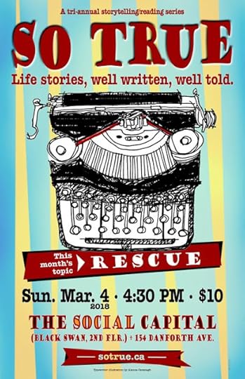 The next So True isn't until October; this particular May and June are too busy for me to be able to devote the time to our usual late spring session. Our autumn topic: Kith and Kin. I just love the word 'kith,' and those two words make for the best stories. So - stay tuned. http://www.sotrue.ca