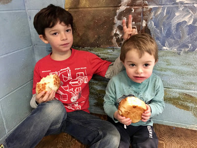 Today, across town to see Anna and the boys - it's been weeks. We got Eli after school and went to his floor hockey class again. I was there for the first class some weeks ago, and this was the last of the term - they've come a long way, those hooligan five-year old boys with their ceaseless energy. It was wonderful to see them screaming with laughter playing dodgeball as a warmup, and Ben allowed to join in at the end. But I was exhausted just watching them - non-stop noise and motion. My poor daughter.