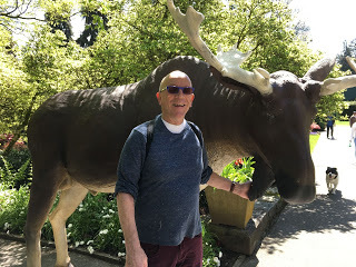 Crazy people. Chris and I went for a walk in Stanley Park to see the rhododendrons and azaleas. I have to say that besides the mountains and the ocean, what Vancouver has going for it are those two flower bushes, which we do not get in Ontario. Stunning. And for some reason, there was a big fake moose.