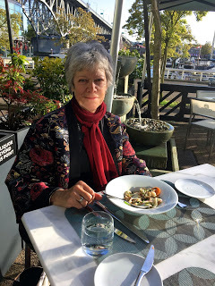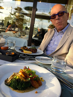 We took a break, I went home to clean and pack, and we met again early evening by the water - Chris brought a half bottle of champagne and glasses, I brought some hummus and crackers, and we had our aperitif sitting on a picnic bench watching the boats in the sunshine. And then we went to Chris's favourite restaurant - Ancora, again right on the water, serving food that's a mix of Peruvian and Japanese. Yes. Mostly fish, and sublime.