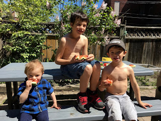We just had two days of full-on summer - 30 degrees feeling like much more - and now it's going back to a normal springtime. Which is a relief, because I haven't even had time to bring out my summer clothes yet. Plus good weather is important because my beloved daughter is throwing a birthday party for her older son on Saturday and is expecting 18 adults and 19 children. Yes. She is insane. But Thomas comes from a big family, there are lots of cousins and step-cousins and she wants Eli to know his family. So 19 children, including some extremely energetic boys. Luckily the weather will be good and they'll be outside; she devises all kinds of fun things for them to do. And then there's opening presents and cake, which will occupy them all for at least seven minutes.