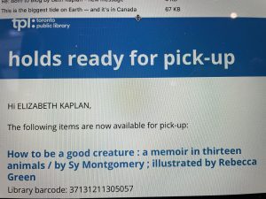 We need something to cheer us up these days. Spring will do. Magnolias will do. And the library will do. This is the first hold notification I’ve received in many months, since our fabulous library system was hacked last fall and many services stopped. Welcome back, beloved library.