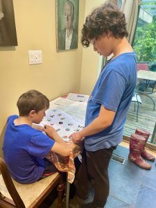 Speaking of treasure, on Sunday the boys came with their mother for Sunday dinner. They are beautiful and difficult. Having two parents is a huge help, but if there’s only one, it should be a strong woman like Anna. It was a lovely evening, so after dinner, before ice cream for dessert, we proposed a walk, which they vehemently opposed. Ben retired to write something and appeared with a note which read, “We r not going to the park onlis we get ice cream.”