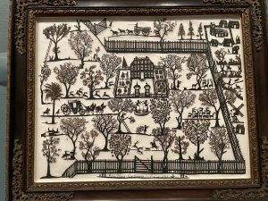 Wednesday, to the Art Gallery to see an exhibition of art by women and then to dinner in the bistro there, celebrating Toronto Lynn’s birthday. The exhibit is wonderful and exhaustive, proving categorically that women artists were for centuries unjustly sidelined and marginalized. Here’s one example of painstaking handiwork: