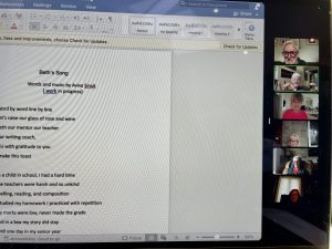 A group of former students years ago formed a writing group and hired me to come in to edit periodically, latterly on Zoom. Today they’re moving on and said goodbye , telling me that my “particular genius” is “bringing people together in harmony and safety,” “making everyone feel part of the same process,” “that every voice is important.” The importance of dialogue, of putting yourself in the story. The words they won’t forget: What is this really about? Why are you telling me this story? One of them will have an essay in the Globe next week. NICE!