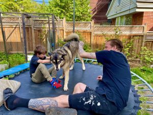 We did have our Mother’s Day feast, preceded and followed by much bouncing on the remains of the trampoline by Ben, Sam, and Bandit, who loves bouncing. The best part was reading a few chapters of The Island of the Blue Dolphins to them in the sunshine. As I’ve said before, the main reason to have children and grandchildren is so you can re-explore great kids’ books, and, in cases like this, discover them for the first time. She’s alone on an island with a pack of wild dogs! What will happen?