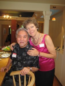 No, I won’t end there. My friend Louise in Ottawa just sent me a picture she took of me with my beloved Wayson at my 60th birthday party. I’d made name tags for everyone. Mine says, “Beth. Aging gracefully.” His says, “Wayson. Supreme guru.”