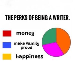 A meme on the internet. Yes! Tell it like it is! No, not really. No money, perhaps not much pride from family, but happiness, yes, especially when someone throws their arms around you and says, “I LOVED your book!” All worth it, after that.
