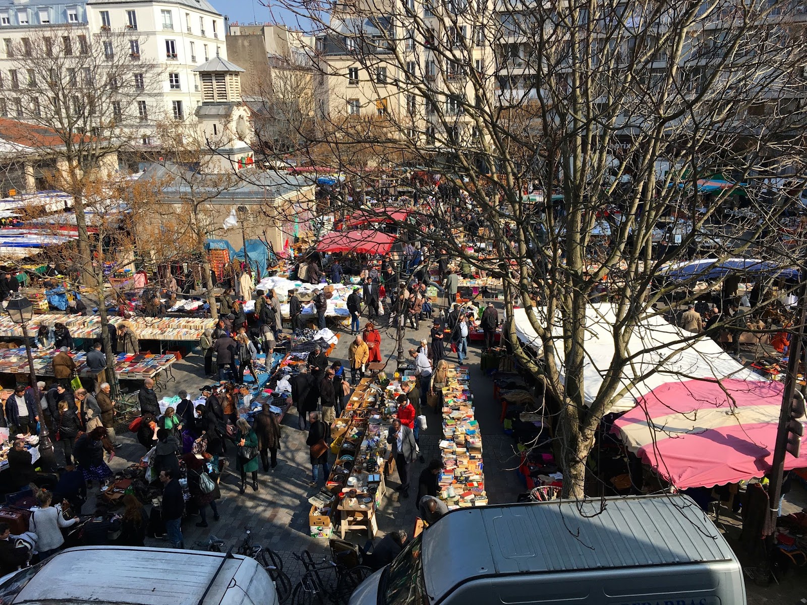 The view from our window of the Place d'Aligre and its market. Piles of junk, right outside my door.