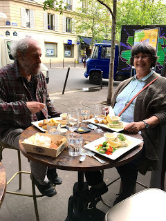 And now - Lynn's day at work went well, and we're going to make a simple supper in the flat. We're drinking a 2012 Faugeres and have ham, cheese, unbelievably good sourdough bread and salad, and we're in Paris. Life doesn't get better than that.
