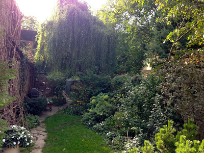 Yesterday, heartbreak and celebration - I went to visit a dear friend who has ALS and is the bravest woman I know. Then to a Thanksgiving dinner on the Common, a shared green space behind a row of houses nearby, with tables set up outside, all of us sitting in the sun under huge trees reconnecting with neighbours and watching the next generation, the kids who grew up nearby and are the same age as mine, and their kids, the grandchildren. A wonderful event produced by Gretchen and Jack. Thanks to them.